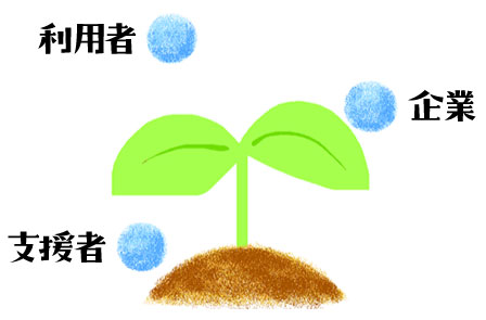 3つの水玉は「利用者」「企業」「支援者」を表しています。